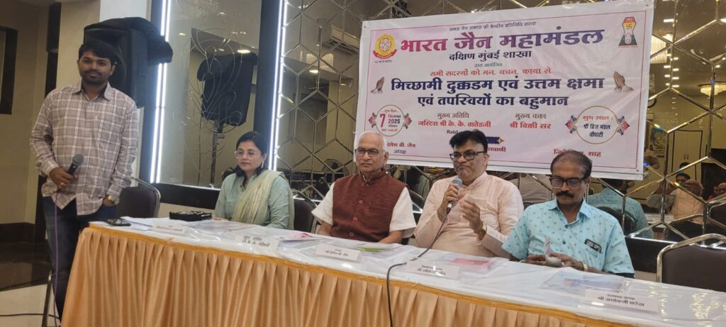 भारत जैन महामंडल दक्षिण मुंबई ब्रांच का क्षमापना एंव तपोनुमोदना कार्यक्रम मुंबई के श्री ब्रज मंडल बेंक्वेट में भारत जैन महामंडल दक्षिण मुंबई ब्रांच के अध्यक्ष दिपेश जैन के नेतृत्व मे क्षमापना (मिच्छामी डुक्कडम) और तप की अनुमोदनार्थ सफलतापूर्वक संपन्न हुआ।
