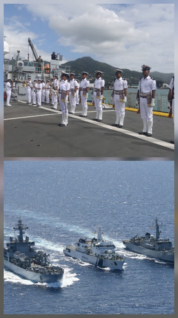 1TS वर्तमान में दक्षिण-पश्चिम हिंद महासागर क्षेत्र में लंबी दूरी की प्रशिक्षण तैनाती पर है।बंदरगाह पर आगमन पर सेशेल्स रक्षा बल (एसडीएफ) बैंड द्वारा *औपचारिक स्वागत* किया गया, जिसने दोनों देशों के बीच मज़बूत समुद्री संबंधों पर ज़ोर दिया। भारतीय नौसेना के औपचारिक गार्ड और बैंड ने समान एकजुटता के साथ 1TS पर परेड की।इस यात्रा के दौरान, 1TS के वरिष्ठ अधिकारी कैप्टन तिजो के. जोसेफ सेशेल्स सरकार के मंत्रालय के महत्वपूर्ण गणमान्य व्यक्तियों, एसडीएफ और भारतीय उच्चायोग के वरिष्ठ अधिकारियों से मुलाकात करेंगे।