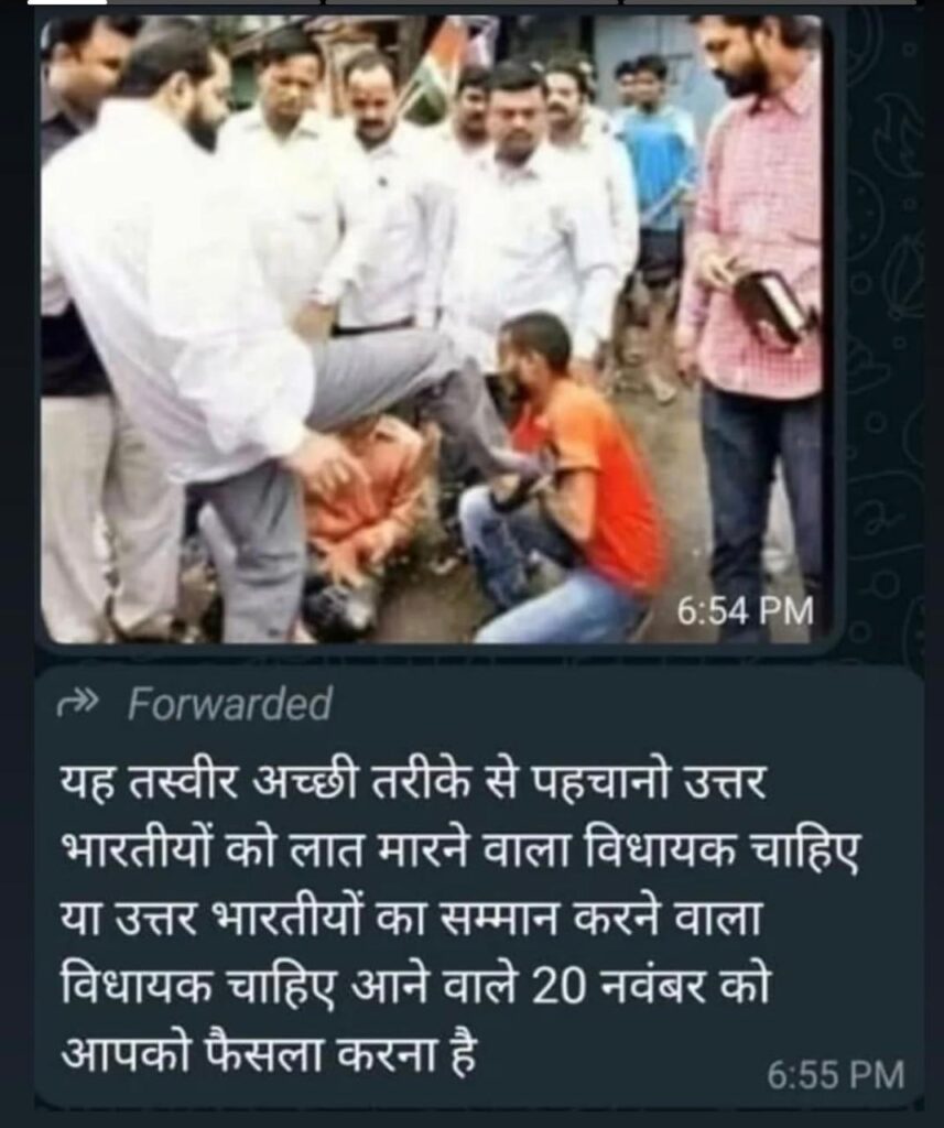 पूरे चांदीवली विधानसभा में आज पूरे दिन उत्तर भारतीयों को दिलीप लांडे द्वारा लात मार कर पीटे जाने की फोटो वायरल होती रही. यह यादगार तस्वीर दिलीप