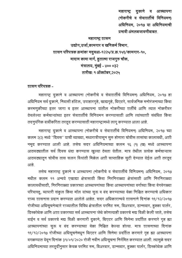 ज्ञात हो कि दुकानों के समय को लेकर लंबे समय से भ्रम की स्थिति थी । जीआर जारी होने के बाद अब यह बात पूरी तरह स्पष्ट हो गई है।