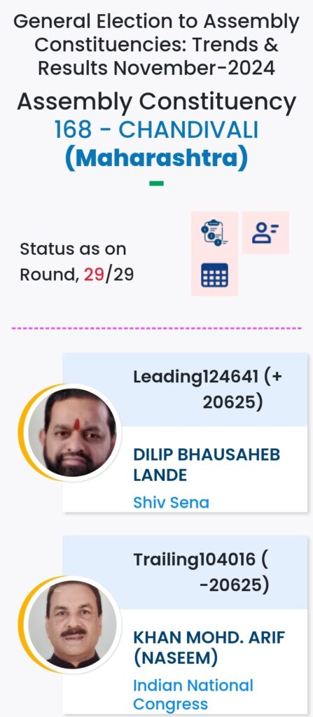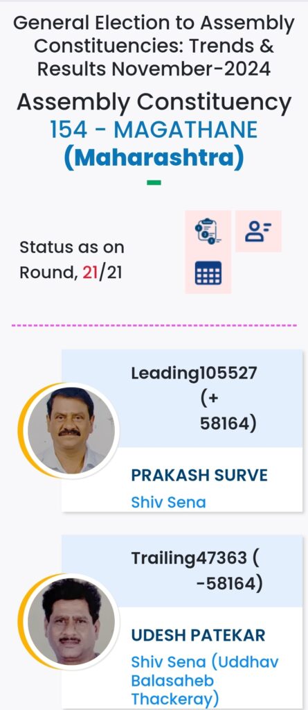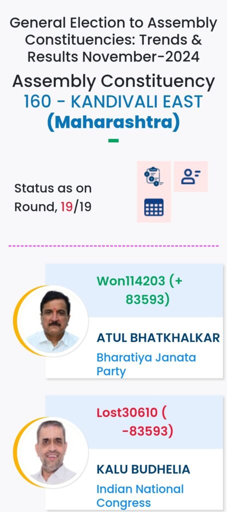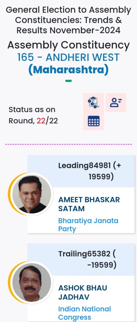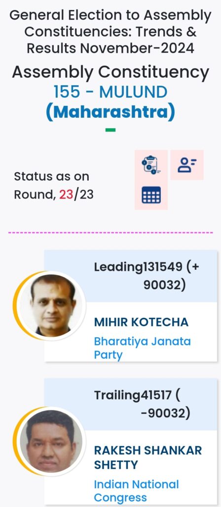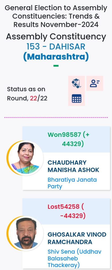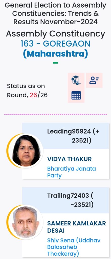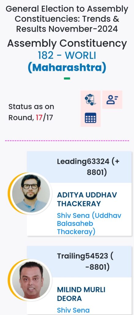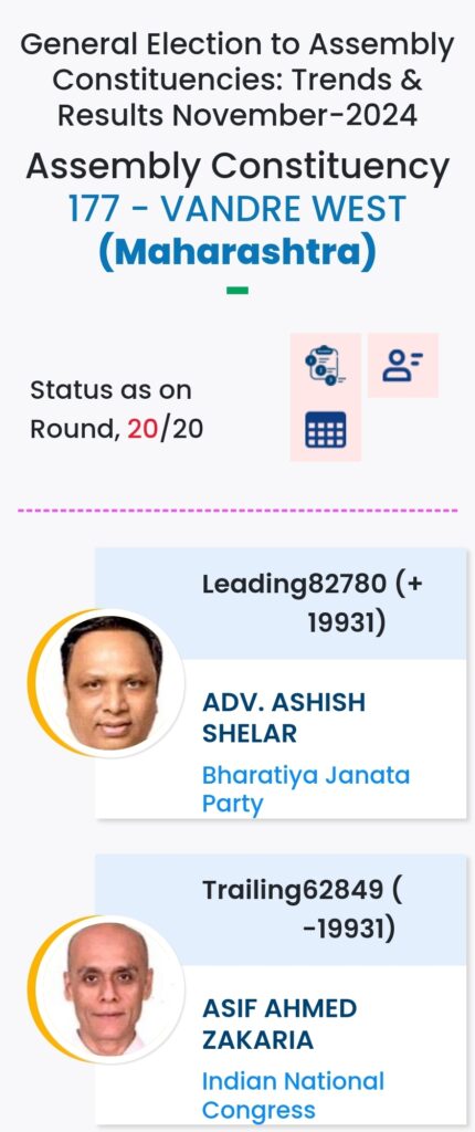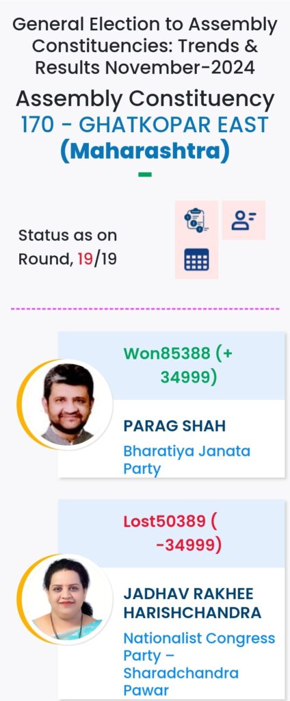 महाराष्ट्र विधानसभा चुनाव में महायुति ने बाजी मारी है. मुंबई मे विधानसभा चुनावों के दौरान विभिन्न पार्टियों के प्रत्याशियों की हालत निम्नलिखित रही:-