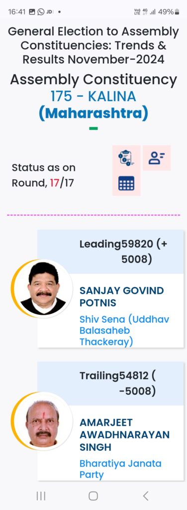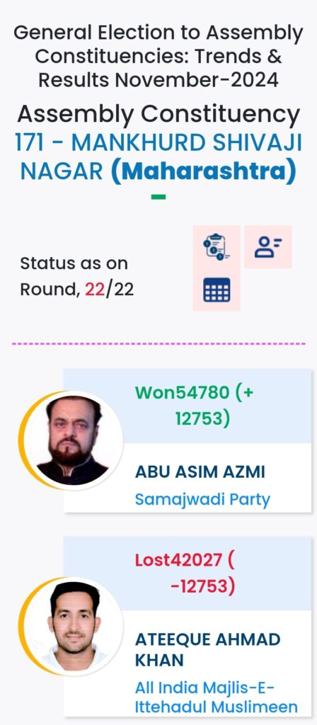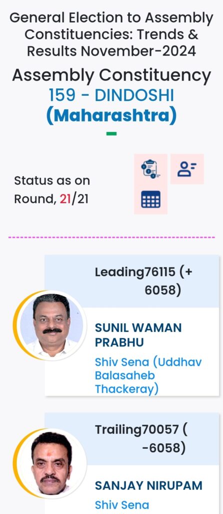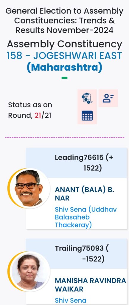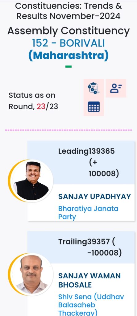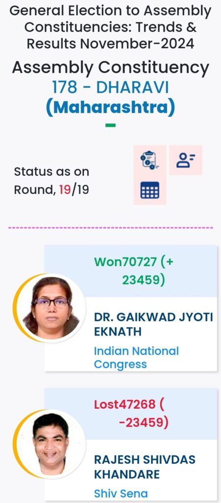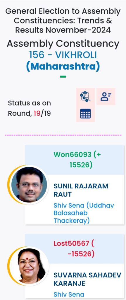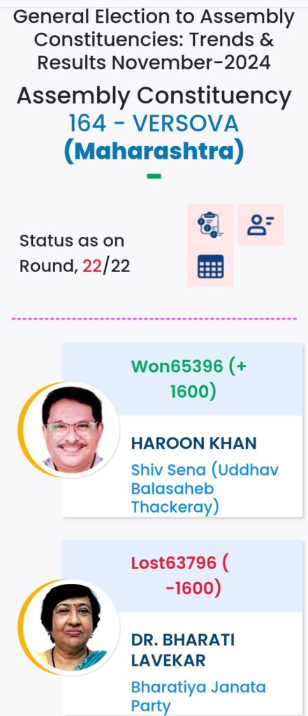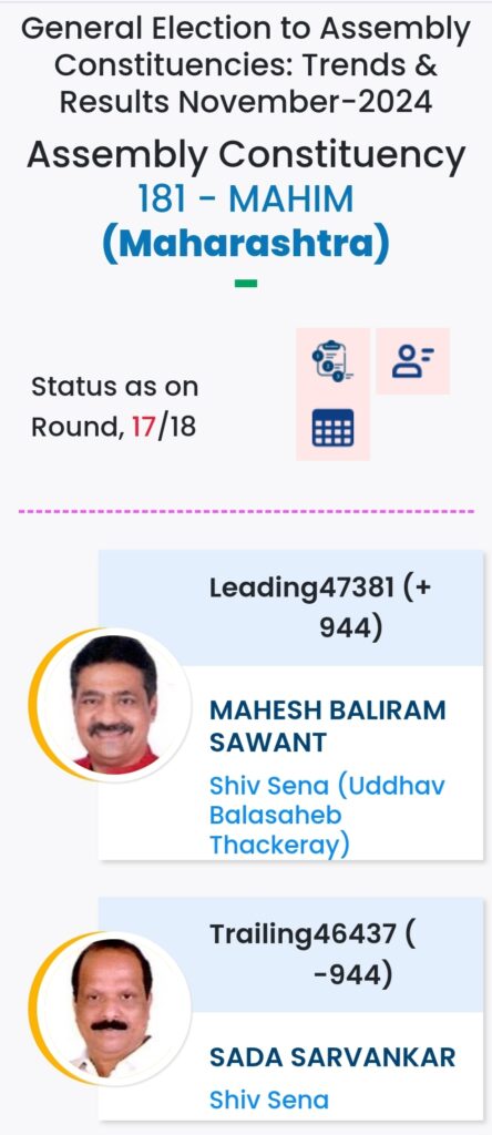 महाराष्ट्र विधानसभा चुनाव में महायुति ने बाजी मारी है. मुंबई मे विधानसभा चुनावों के दौरान विभिन्न पार्टियों के प्रत्याशियों की हालत निम्नलिखित रही:-