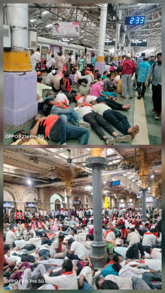 मराठा समुदाय द्वारा ओबीसी आरक्षण की मांग के कारण शुक्रवार को मुंबई में सामान्य जनजीवन और व्यापार पूरी तरह ठप्प रहा। मराठा प्रदर्शनकारियों के वाहनों ने अटल सेतु, ईस्ट फ्री रोड सहित कई सड़कों को अवरुद्ध कर दिया, तीनों रेलवे लाइनों पर प्रदर्शनकारियों की भीड़ के कारण लोकल ट्रेनें ठप्प हो गईं। आज़ाद मैदान के अपर्याप्त होने के बाद कार्यकर्ता दक्षिण मुंबई में फैल गए। सीएसएमटी स्टेशन पर भीड़ फैल गई । इन सब से आम मुंबईकरों को भारी परेशानी हुई।